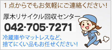 お急ぎの場合や力仕事に不安な方は、厚木リサイクル回収センターにお任せいただけますと幸いです。